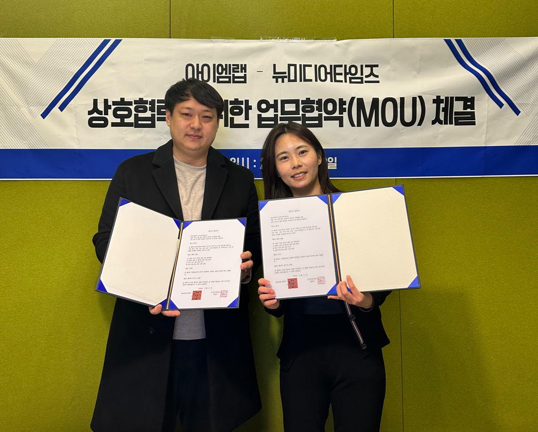 뉴미디어타임즈는 문화·예술·산업 분야 전문 미디어로, 아이엠랩 콘텐츠의 대외 확산 및 공신력 확보를 지원할 예정이다.