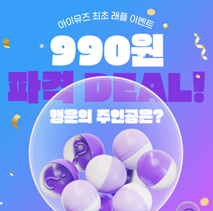 이벤트 참여는 아이뮤즈 공식몰 회원가입 후 해당일의 래플 상품을 990원에 구매하면 자동 응모된다. 낙첨 시 결제 금액은 적립금으로 전액 환불되어 사실상 비용 부담 없이 참여할 수 있다. 자세한 내용은 [아이뮤즈 공식 홈페이지]에서 확인 가능하다.