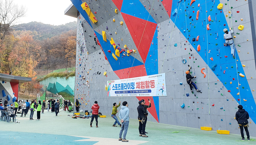 | 대구 남구시민들이 스포츠클라이밍 체험활동에 참여하고 있다. 사진=영남이공대 제공 |