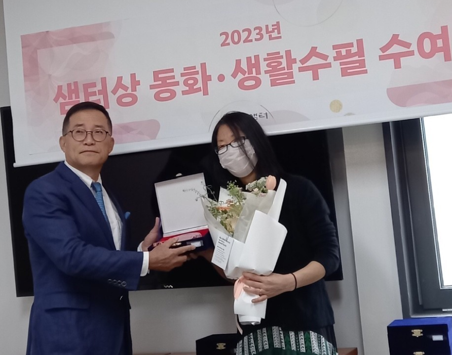 2023 제45회 샘터문학상 동화부문 우수상을 수상한 제스혜영씨(오른쪽). 사진=세종사이버대 제공 |