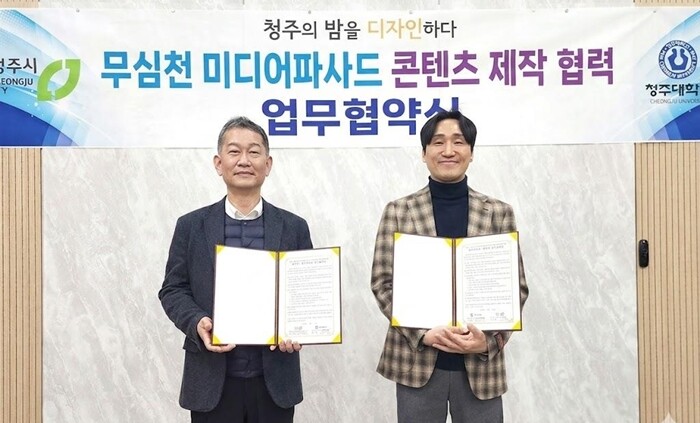이번 협약은 영상미디어디자인 전문 교육과정을 이수한 청주대 디지털미디어디자인학과 재학생들이 직접 콘텐츠 기획·제작에 참여, 학문적 역량을 실제 도시공간에 적용하고 지역 문화자산을 활용한 창의적 도시경관을 조성하기 위해 마련됐다.