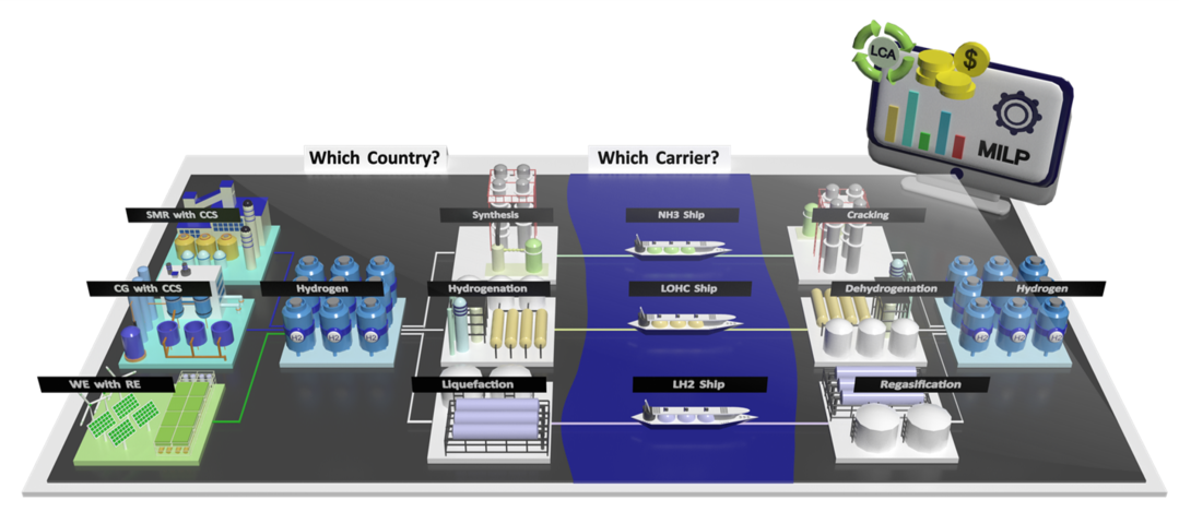 임 교수연구팀은 '국제적 해외 수소 공급망에 대한 경제성 및 환경성 측면 최적화'에 대한 연구를 통해 수소 도입 예정 국가(한국, 일본, 독일)의 수요와 수소 수출 예상 국가(호주, 칠레 등 총 16개국)를 고려해 수소 공급망 구축을 위한 실질적인 지표를 제시했다.