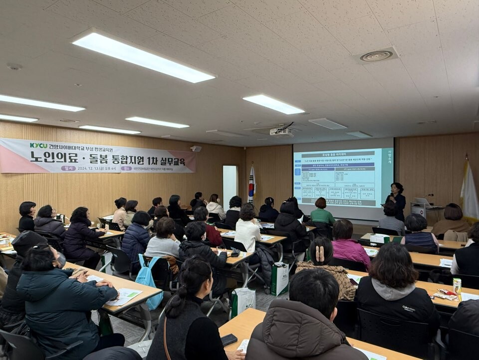 [대학저널 온종림 기자] 건양사이버대학교 부설 평생교육원이 지난 13일 국민건강보험공단 대전유성지사 대강의실에서 노인의료·돌봄 통합지원 1차 실무교육을 운영했다.