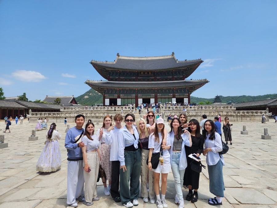 경복대 ‘Summer Study Tour’ 참여 학생들이 경복궁을 관람하고 있다. 사진=경복대 제공 |