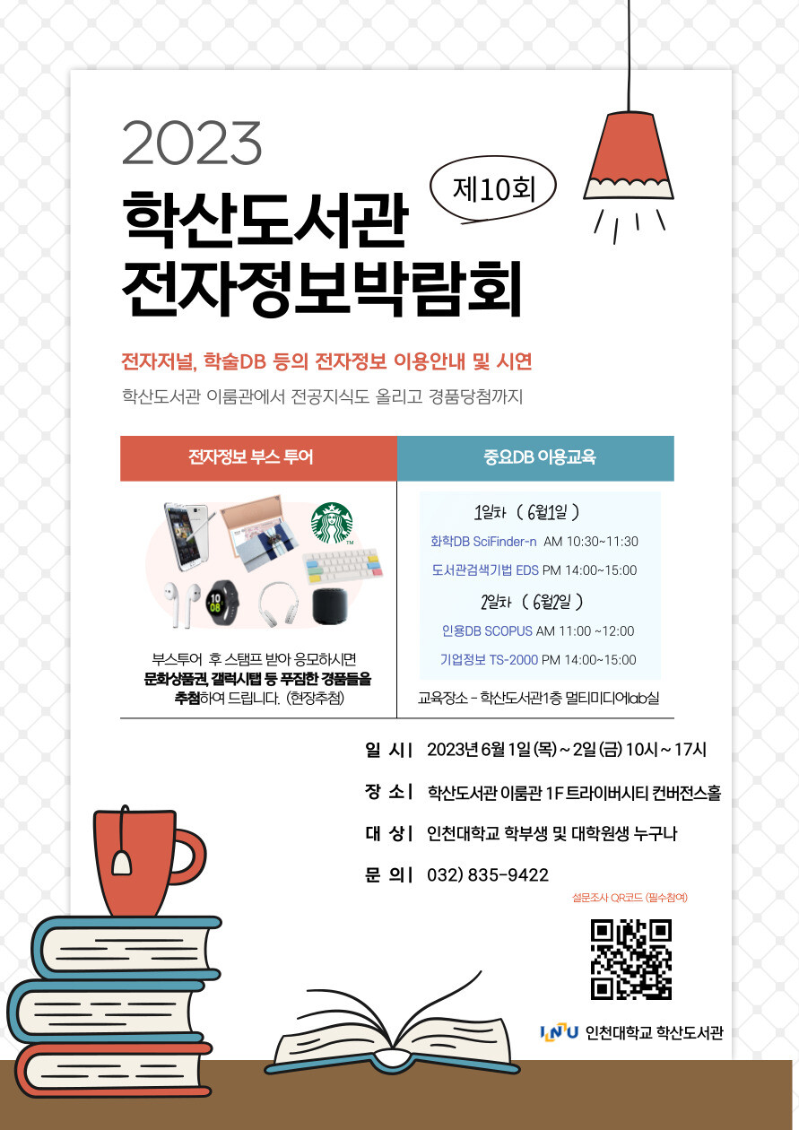 학산도서관 이룸관 1층 트라이버시티 컨버전스홀에서 진행되는 이번 행사는 총 22개의 업체가 참여해 재학생들을 대상으로 학산도서관이 구독하고 있는 전자정보의 활용법을 안내한다.