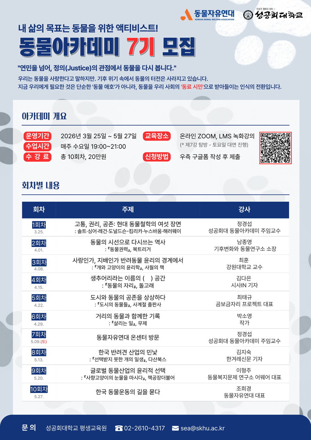 성공회대 ‘동물아카데미 7기’ 수강생 모집 포스터. |