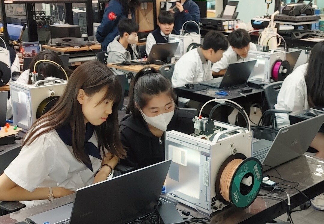 국립창원대 메이커아지트 팹랩창원센터에서 지역 청소년 대상 디지털 메이커 교육이 진행되고 있다. 사진=국립창원대 제공 |