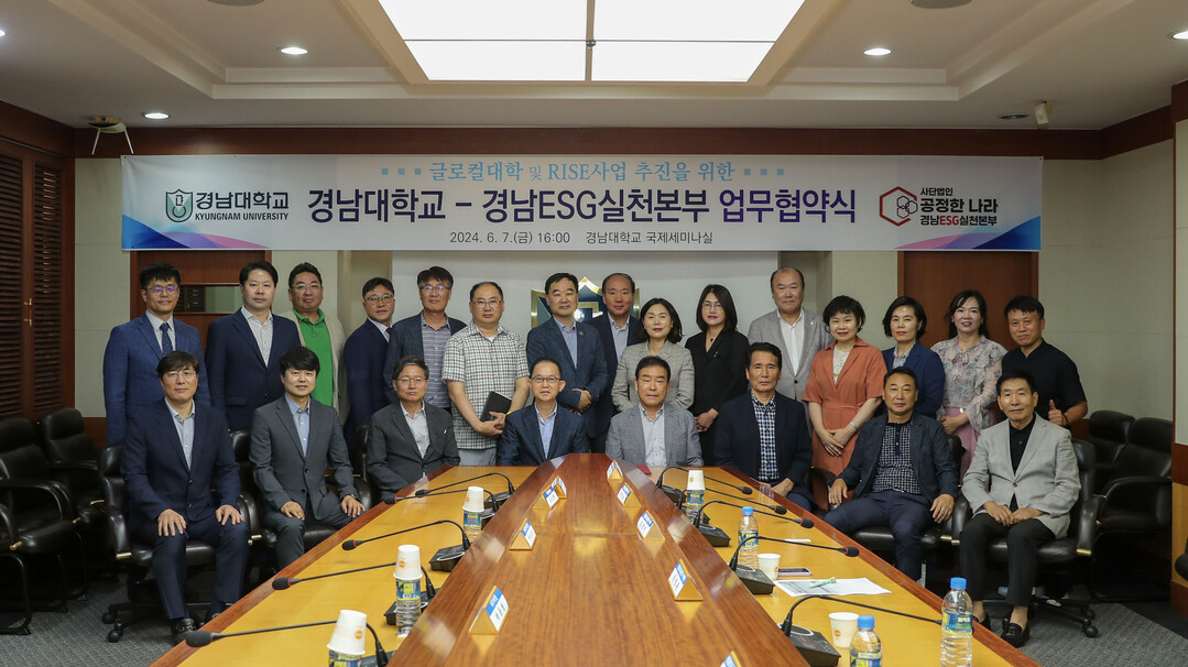 [대학저널 이선용 기자] 경남대학교가 7일 국제세미나실에서 경남ESG실천본부와 ‘글로컬대학30 및 RISE 사업 공동 수행’을 위한 협약을 맺었다.