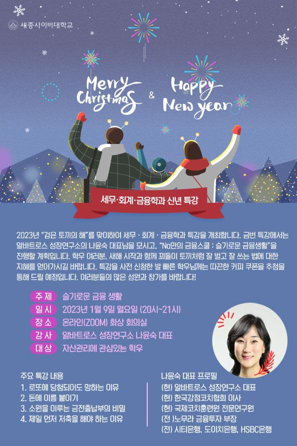 김유진 세종사이버대 세무·회계·금융학과 학과장은 “향후 메타버스 플랫폼 등의 다양한 소통의 장을 통해 세무, 회계, 금융 분야의 핵심 이슈를 다루는 시간을 많이 갖겠다”고 말했다.