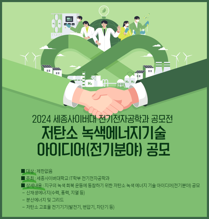 김일규 세종사이버대학교 전기전자공학과 교수(학과장)는 “우리 학과는 신재생에너지, 분산에너지 및 그리드, 저탄소 고효율 전기기기와 같은 지속 가능한 에너지 기술을 통한 지구의 녹색회복 운동에 동참하기 위해 공모전을 열게 됐다”며 “특히 우리 학과가 일반인들의 관심이 많은 전기의 발전, 송전, 변전, 배전을 다루는 전기공학 분야 특화된 학과라는 강점을 홍보하는 좋은 기회가 될 것”이라고 설명했다.
