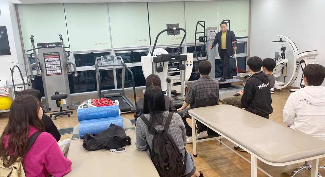 물리치료학과의 박사 대학원생인 신승우 씨가 근무하는 ‘더나은병원 재활센터’에서 물리치료사로서의 다양한 경험을 공유하며, 근골격계 물리치료 분야의 다양한 진로 및 취업에 대한 직무와 대학 생활 중에 준비할 수 있는 전공교과목 및 자격증에 대해 설명을 청취했다.