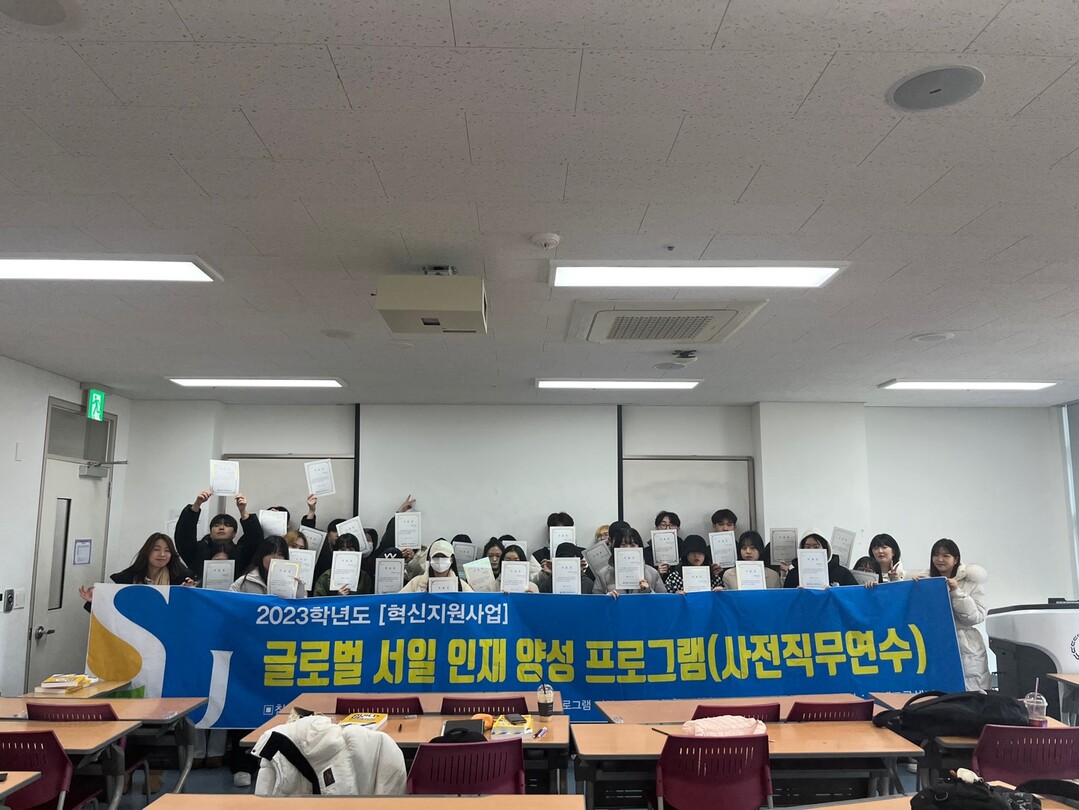 [대학저널 이선용 기자] 서일대학교 국제교류센터는 1월 19일 생명화학공학과 15명과 커뮤니케이션디자인학과 21명이 2023학년도 글로벌서일인재 양성프로그램 사전직무연수를 성공적으로 수료했다고 23일 밝혔다.