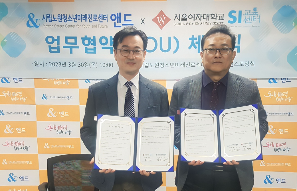 [대학저널 온종림 기자] 서울여자대학교 SI(Social Innovation)교육센터와 시립노원청소년미래진로센터가 사회적 가치를 실천할 수 있는 청소년 인재 양성을 위해 업무협약을 체결했다.