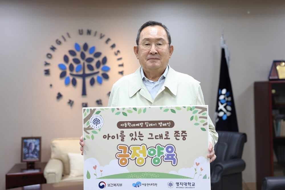 [대학저널 온종림 기자] 명지대학교 유병진 총장이 23일 아이를 있는 그대로 존중하는 긍정양육 문화 확산을 위한 '아동학대예방 릴레이 캠페인'에 참여했다.