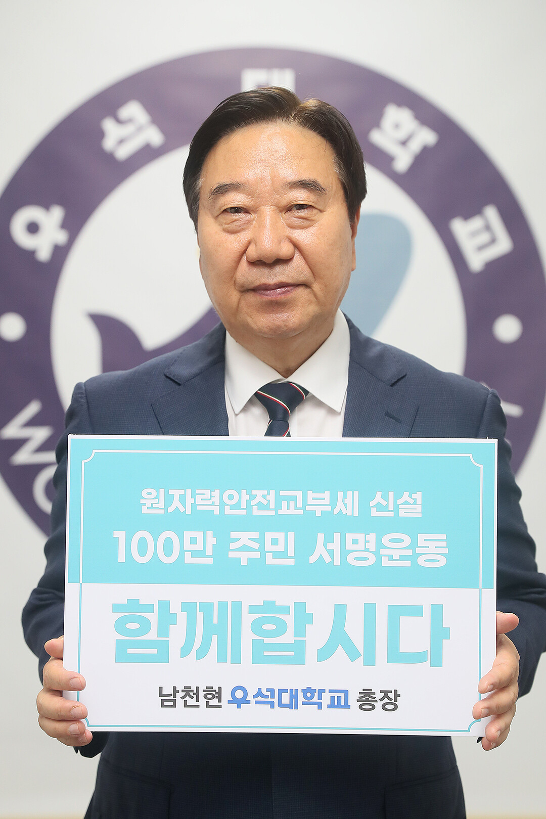 [대학저널 온종림 기자] 우석대는 남천현 총장이 원자력안전교부세 신설을 촉구하는 100만 주민 서명운동 챌린지에 동참했다고 14일 밝혔다.