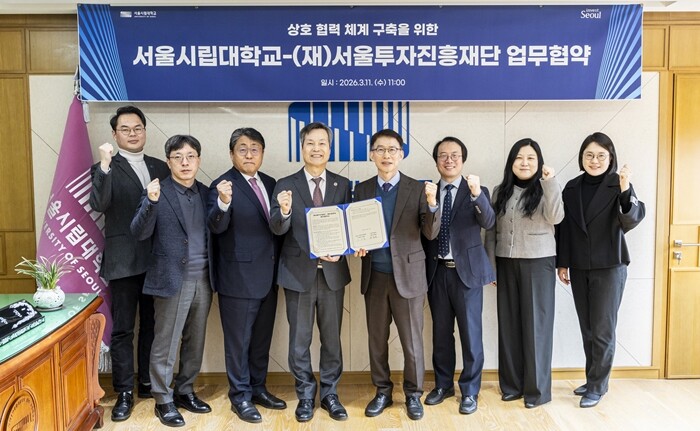 서울시립대가 11일 재단법인 서울투자진흥재단과 업무협약을 체결했다. 사진=서울시립대 제공 |
