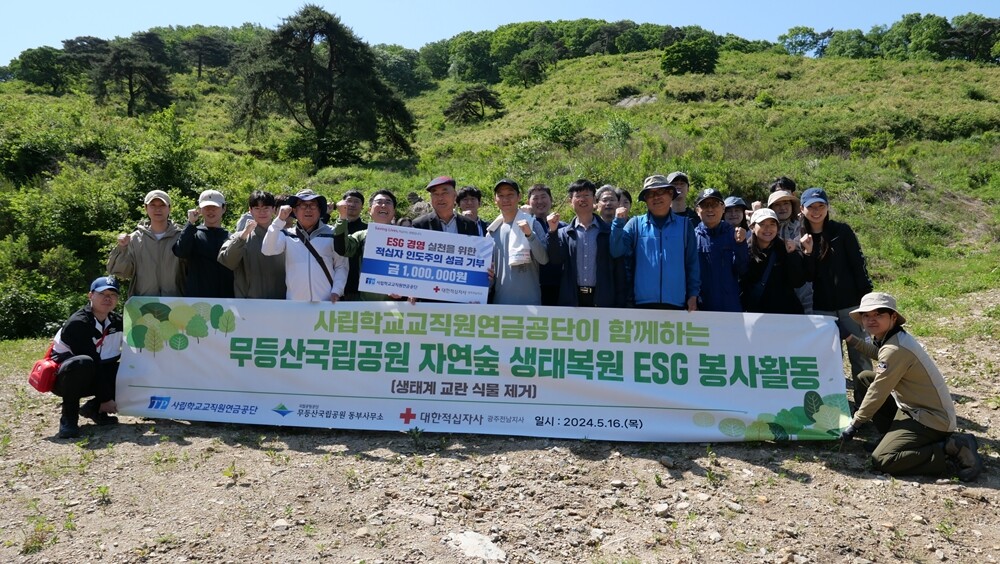 [대학저널 온종림 기자] 사립학교교직원연금공단(사학연금)이 16일 무등산 국립공원 너와나목장 자연숲에서 생태복원 봉사활동에 참여했다.