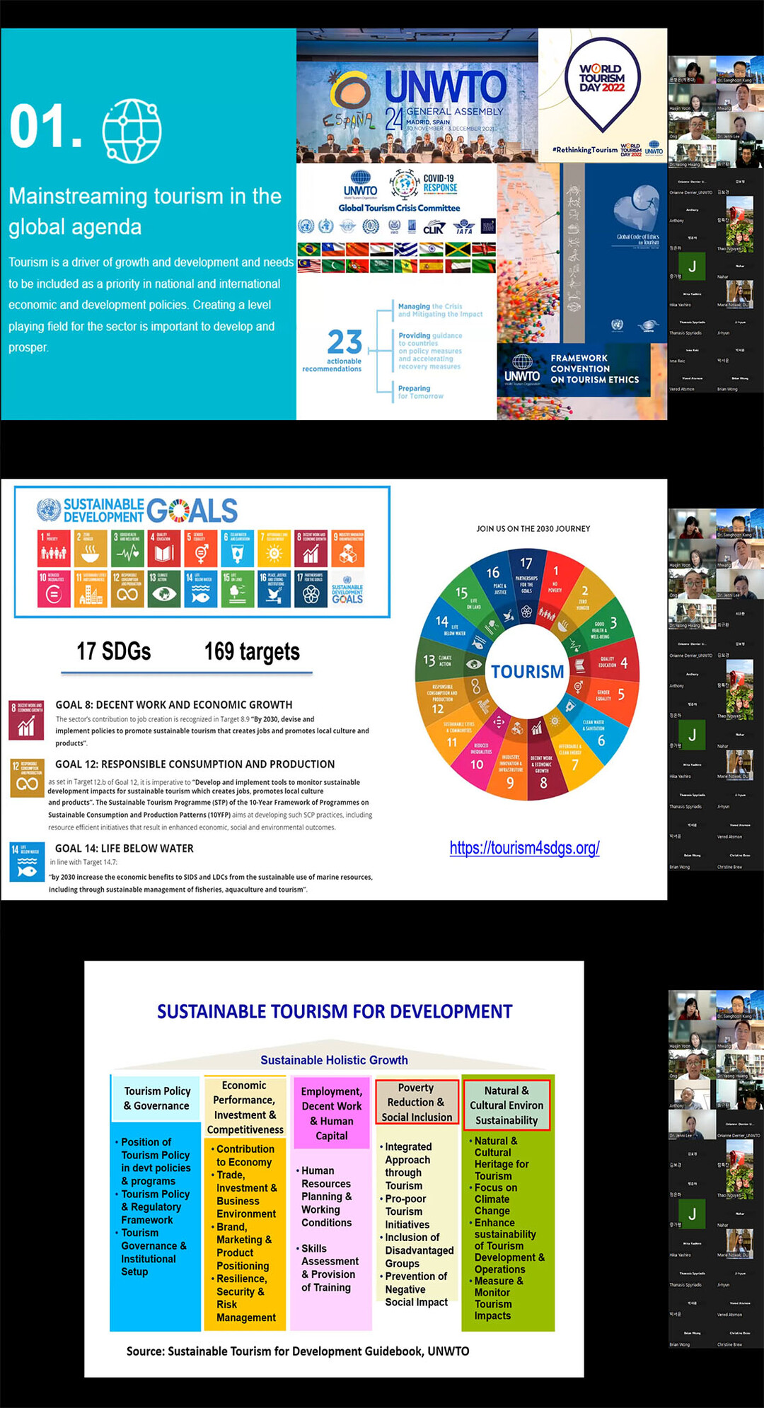 온라인(ZOOM)으로 열린 포럼에는 ‘Major Policy Achievements and Challenges of SDGs in Tourism’이란 주제로 황해국 유엔세계관광기구(UNWTO) 아시아태평양지역국장, Ong Hong Peng 말레이시아관광청장 등 석학들이 발제자로 참여했다.