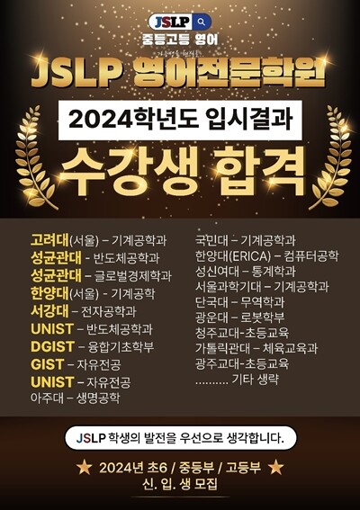 한편, JSLP 중고등영어학원은 앞으로도 맞춤형 내신 및 수능 대비 프로그램을 통해 학습 효율을 높이고, 지역 학생들의 영어 경쟁력 강화에 주력할 계획이다.