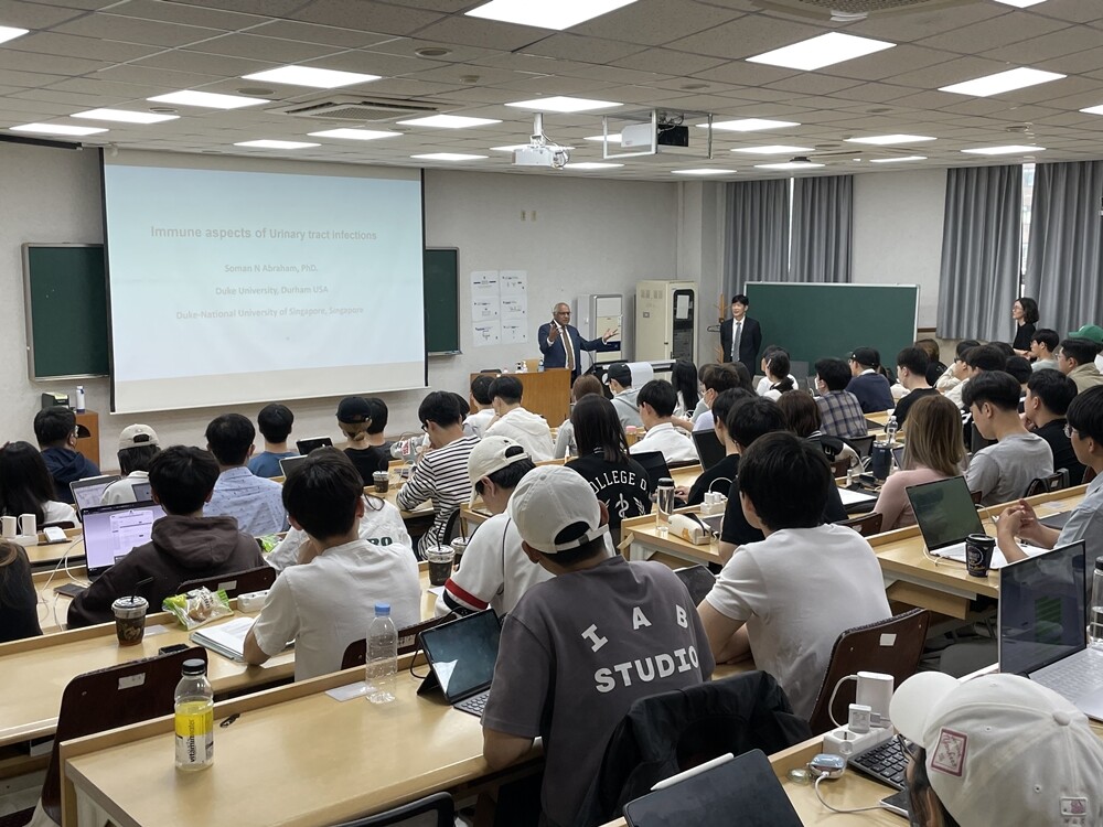 소만 니난 아브라함 교수는 의과대학 의예과 2학년 학생들을 대상으로 ‘요로감염 면역학’(Immunology of Urinary Tract Infections)에 대해 이야기했다.