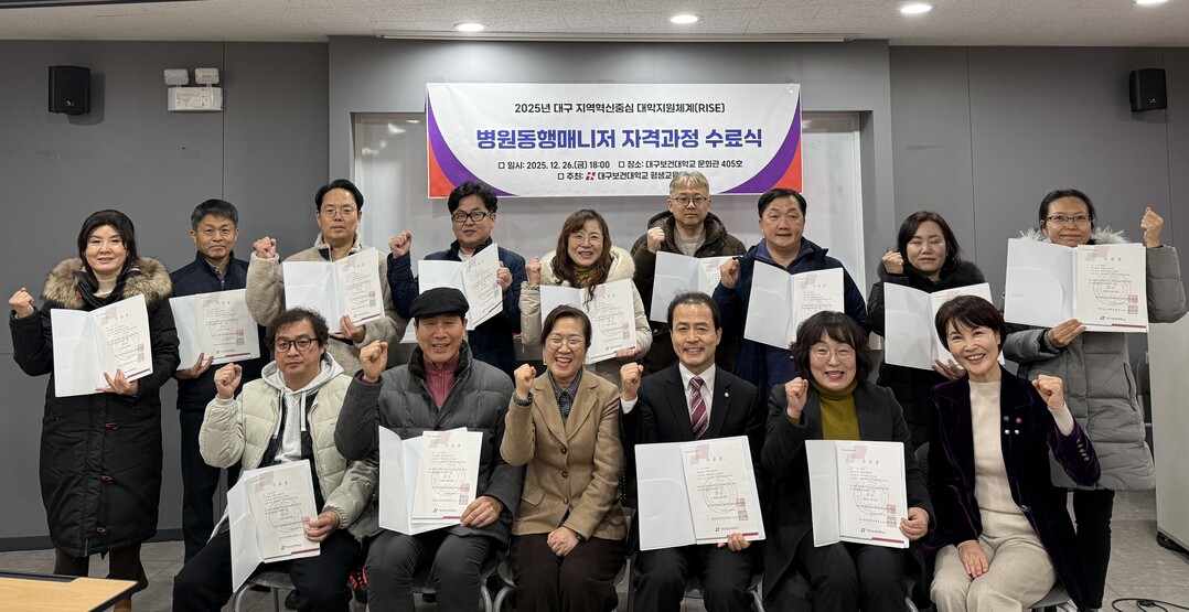 [대학저널 이선용 기자] 대구보건대학교 평생교육원은 지난 10월 24일부터 12월 26일까지 문화관 405호에서 ‘병원동행매니저 자격과정(기초·심화)’을 성공적으로 운영했다고 29일 밝혔다.