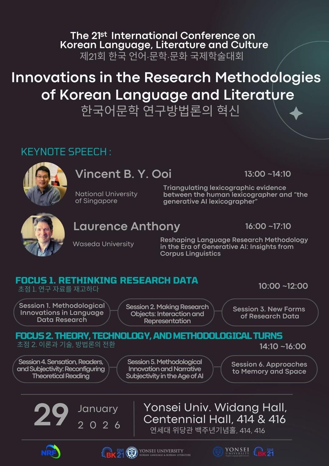 한편, 이번 학술대회는 1월 29일 오전 10시부터 오후 5시 30분까지 연세대 위당관 백주년기념홀 414호와 416호에서 열리며, 관련 분야 연구자와 학생이라면 누구나 참석할 수 있다.