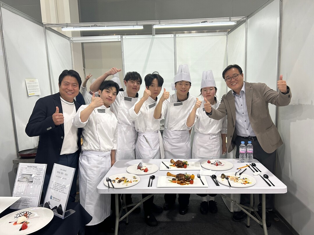 가톨릭관동대 조리외식경영학전공가 ‘2024 대한민국 국제요리&제과경연대회’에서 금상을 수상했다. 사진=가톨릭관동대 제공 |