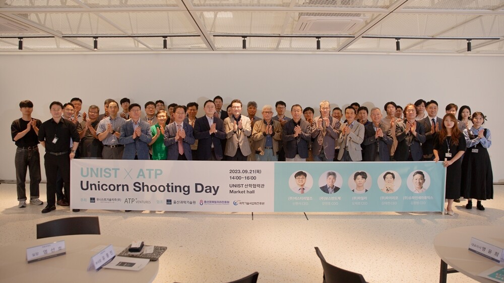 ‘UNISTXATP 유니콘 슈팅 데이(Unicorn Shooting Day)’가 21일 UNIST 산학협력관 마켓홀에서 막을 올렸다. 이번 행사는 유망 지역 벤처기업에 대한 투자를 활성화하고, UNIST-ATP 투자조합 펀드의 투자 성과를 공유하기 위해 마련됐다. UNIST-ATP투자조합 펀드는 지난 22년 UNIST기술지주와 지역 벤처 투자사인 APT벤처스가 설립한 공동 투자 기금이다.