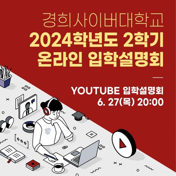 [대학저널 이선용 기자] 경희사이버대학교는 오는 6월 27일 오후 8시 2024학년도 2학기 온라인 입학설명회를 개최한다고 21일 밝혓다.