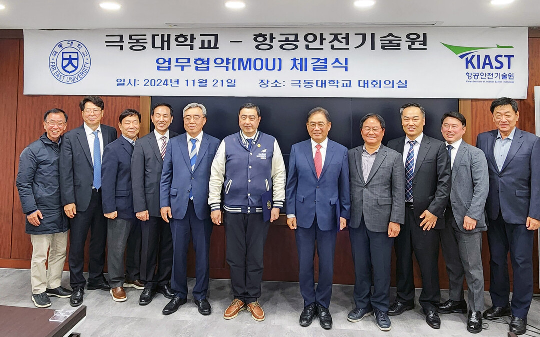 [대학저널 이선용 기자] 극동대학교와 항공안전기술원은 11월 21일 항공안전 분야의 발전을 위해 협력하기로 업무협약을 체결했다고 발표했다고 22일 밝혔다.