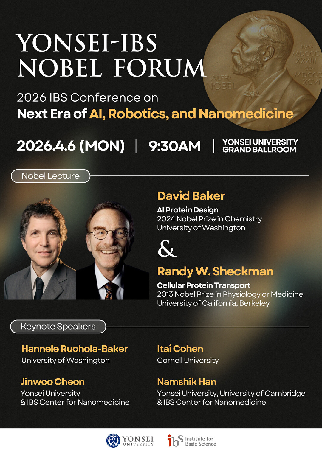 이번 행사는 2026 IBS 콘퍼런스와 함께 열리며, ‘차세대 AI, 로봇, 나노의학 혁신’을 주제로 진행된다. 2024년 노벨 화학상 수상자인 데이비드 베이커 워싱턴대 교수와 2013년 노벨 생리의학상 수상자인 랜디 셰크먼 UC버클리 교수가 기조 강연자로 나선다.
