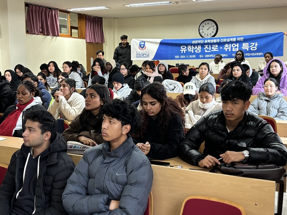 [대학저널 온종림 기자] 경동대학교가 11월 28일 강원도 고성 글로벌캠퍼스에서 유학생 70여 명을 대상으로 ‘유학생 진로·취업 특강’을 개최했다. 경동대 메디컬캠퍼스 취업사관교육센터가 주관한 이날 특강은, 유학생의 국내 취업과 정착을 적극적으로 돕기 위하여 마련됐다.