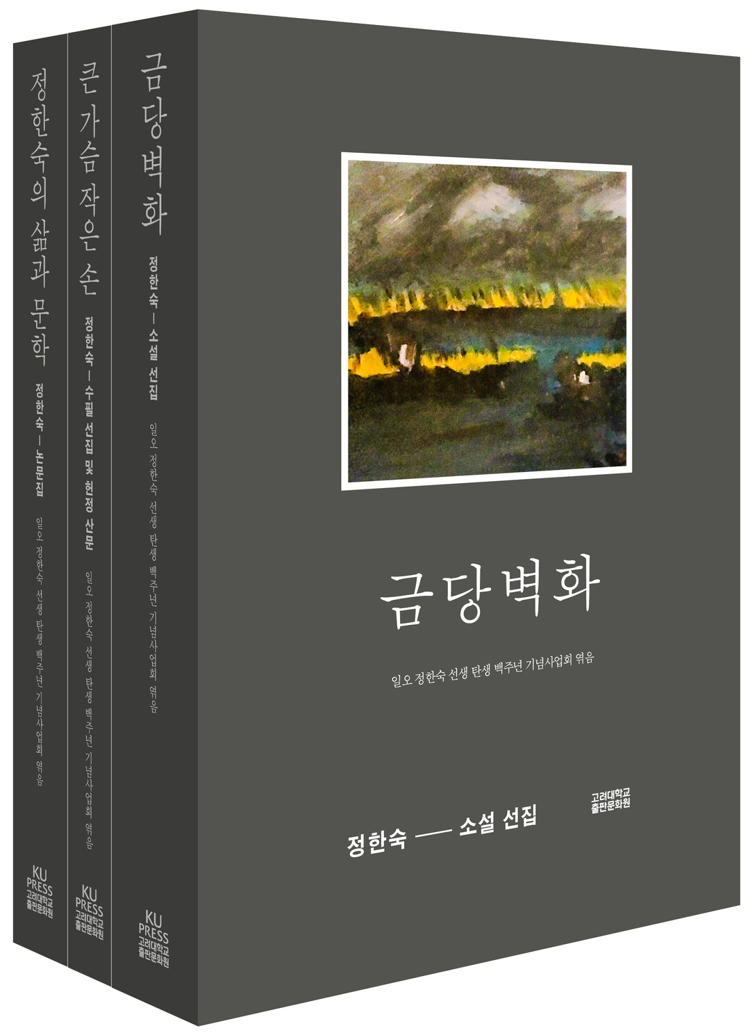 기념도서는 모두 3권으로 ▲정한숙 선생의 단편 소설 16편을 증보 재발간한 ‘금당벽화-정한숙 소설 선집’ ▲정한숙 선생 수필 선집과 제자들의 선생에 대한 회고담, 그리고 1997년 영결식 때 낭독되었던 조시와 조사를 담은 ‘큰 가슴 작은 손 -정한숙 수필 선집 및 헌정 산문’ ▲‘정한숙의 삶과 문학-연구 논문집’으로 구성됐다.