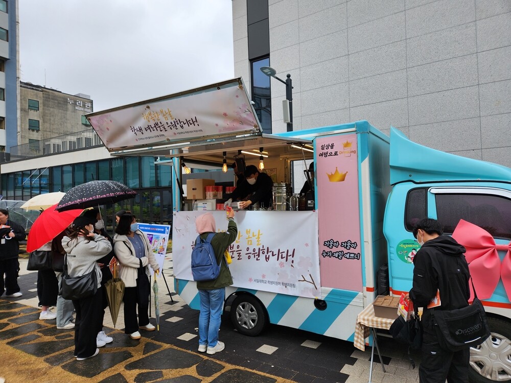 서일대가 지난달 18일 중간고사를 앞두고 ‘행복한 봄날- 모두를 응원해’ 행사를 하고 있다. 사진=서일대 제공 |
