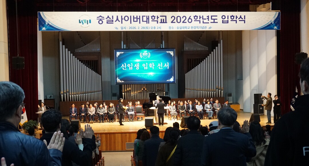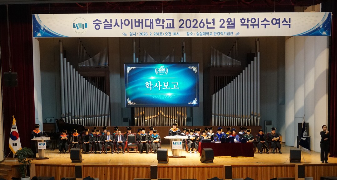 숭실사이버대학교(총장 한헌수)가 지난 28일, 서울 동작구에 위치한 숭실대학교 한경직 기념관에서 2026년 2월 학위수여식 및 2026학년도 입학식을 개최했다고 4일 밝혔다.