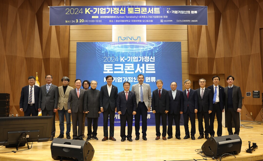 [대학저널 이선용 기자] 경상국립대학교 경영대학과 울산·경남지역혁신플랫폼 USG공유대학이 20일 경상국립대 가좌캠퍼스 국제어학원에서 ‘2024 K-기업가정신 토크콘서트’를 개최했다.