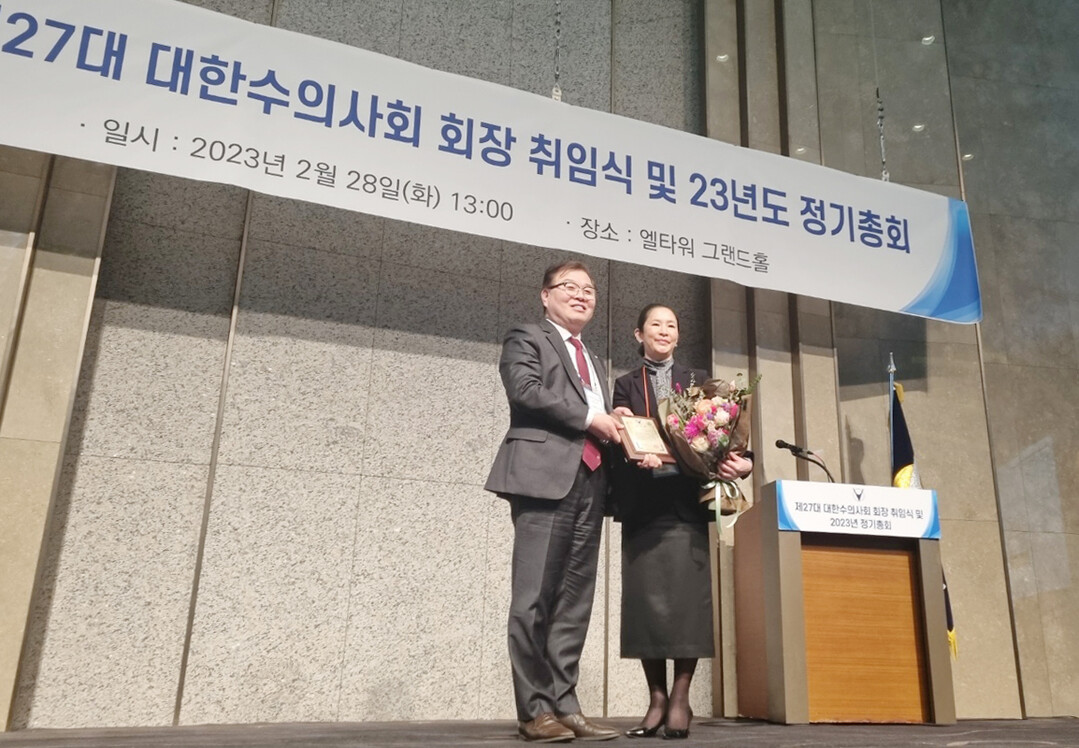 2일 건국대에 따르면 유 이사장은 지난달 28일 서울 양재동 엘시티에서 열린 제27대 대한수의사회 회장 취임식 및 23년도 정기총회에서 허주형 대한수의사회장으로부터 감사패를 받았다.