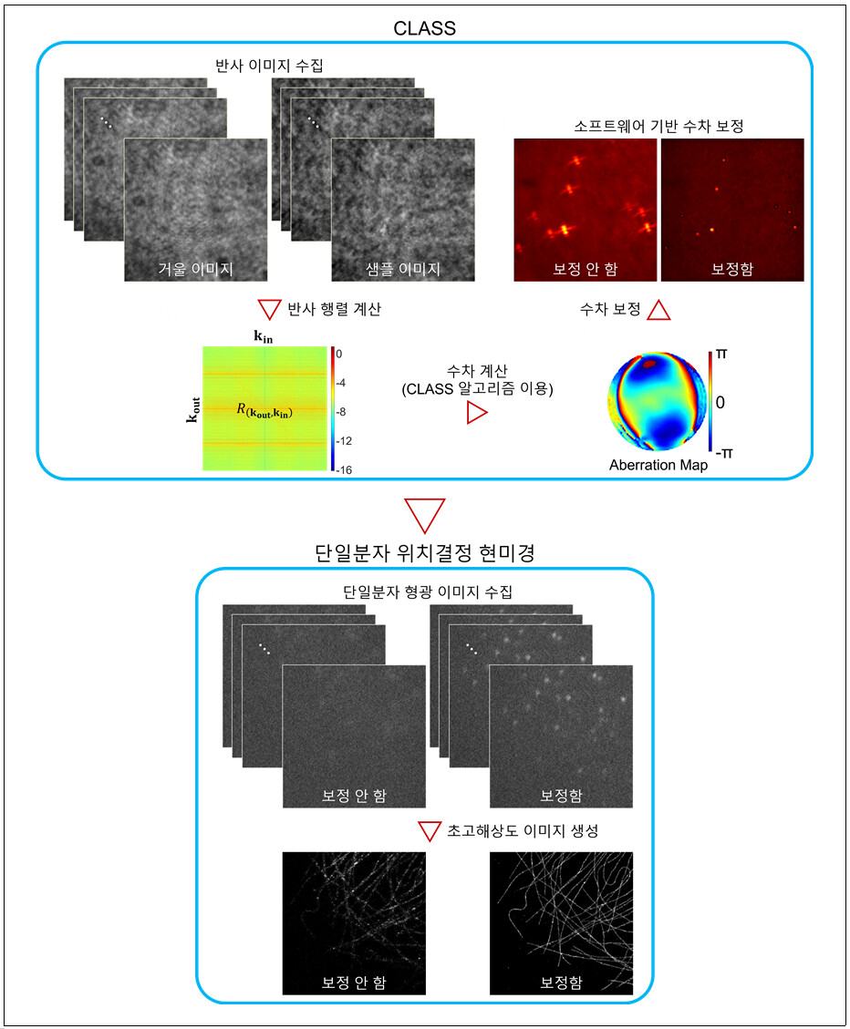 수차 보정을 통해 초고해상도 형광 현미경의 성능을 높이는 방법들은 이미 여러 종류가 개발됐다. 하지만 기존의 방법들은 모두 단일분자 형광 이미지를 수집해 이미지 퀄리티를 향상시키는 방식이었다.