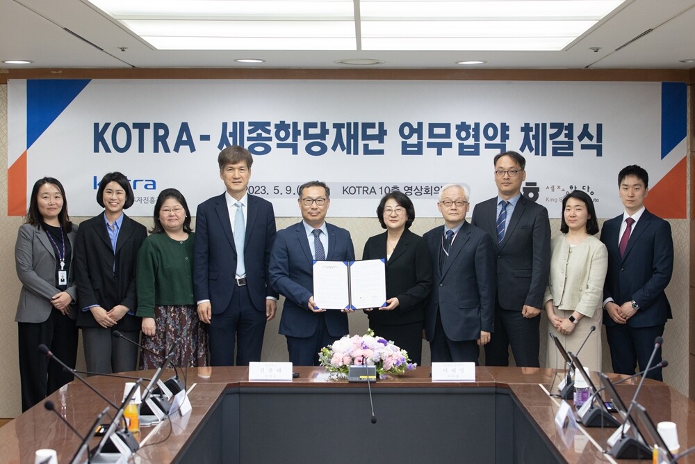 [대학저널 온종림 기자] 세종학당재단과 대한무역투자진흥공사(이하 KOTRA)가 효과적인 해외 외국인 한국어.한국문화 보급과 이를 통한 국내.외 기업의 글로벌 사업 지원을 위한 업무협약을 체결했다.