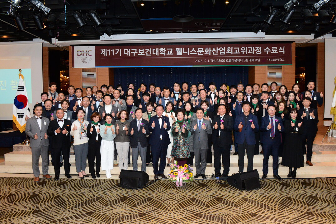 [대학저널 오혜민 기자]대구보건대학교는 지난 1일 대구 라온제나호텔 5층 에떼르네홀에서 웰니스문화산업최고위과정 11기 수료식을 열었다고 5일 밝혔다.