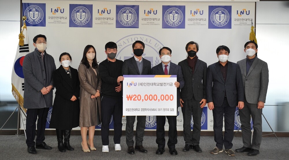 [대학저널 온종림 기자] 인천대학교는 경영대학원 경영학석사(MBA) 39기 원우회가 인천대학교발전기금에 2000만원을 기탁했다고 30일 밝혔다.