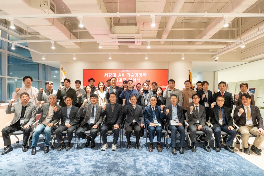 서강대 AX 기술경영학 석사과정 입학식 참석자들이 기념촬영을 하고 있다. 사진=서강대 제공 |