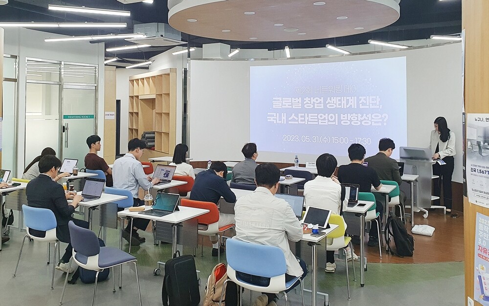 숭실대 캠퍼스타운·코리아스타트업밸리·(사)IT여성기업인협회가 지난달 31일 스타트업 상생·협력을 위한 ‘2023년 제2회 네트워킹 데이’를 열고 있다. 사진=숭실대 제공 |