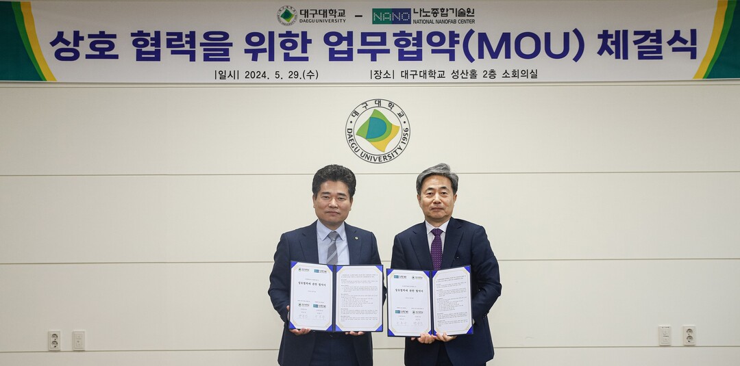 대구대는 지난 5월 29일 경산캠퍼스 성산홀에서 박순진 총장, 박흥수 나노종합기술원 원장 등 관계자들이 참석한 가운데 상호협력 협약식을 개최했다.