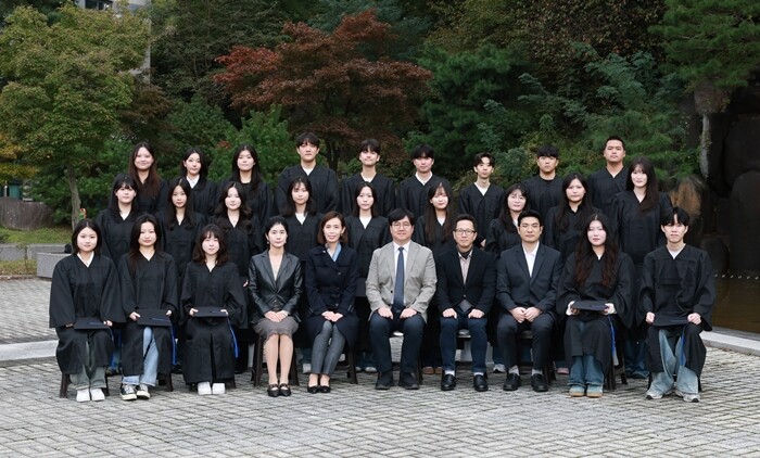 청주대 작업치료학과 교수진과 4학년 졸업예정자들이 졸업사진을 촬영하고 있다. 사진=청주대 제공 |