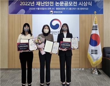인천대에 따르면 안전공학과 이석희, 정승연, 박희경 학·석사과정 학생들은 행정안전부가 지난 2일 주최한 2022년 재난안전 논문공모전에서 최고상인 대상(행정안전부 장관상)을 받았다.