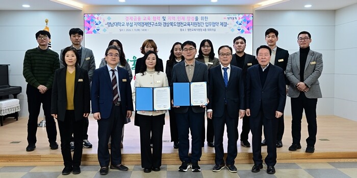 영남대 지역경제연구소는 지난 13일 영천교육지원청 대회의실에서 경상북도 영천교육지원청과 경제·금융 교육 협력 및 지역 인재 양성을 위한 업무 협약(MOU)을 체결했다. 이날 협약식에는 영남대 지역경제연구소 강기천 소장(경제금융학부 교수)을 비롯한 연구소 관계자들과 영천교육지원청 신봉자 교육장 등 양 기관 관계자들이 참석했다.