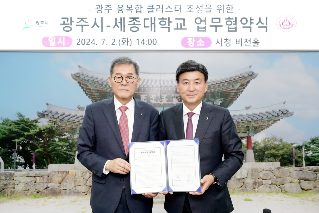 배덕효 세종대 총장은 “이번 협약을 통해 세종대와 광주시가 대한민국의 미래를 이끄는 인재를 양성하고 기술 인프라를 구축하며 상호 발전을 위해 서로 협력하기로 했다”고 말했다.