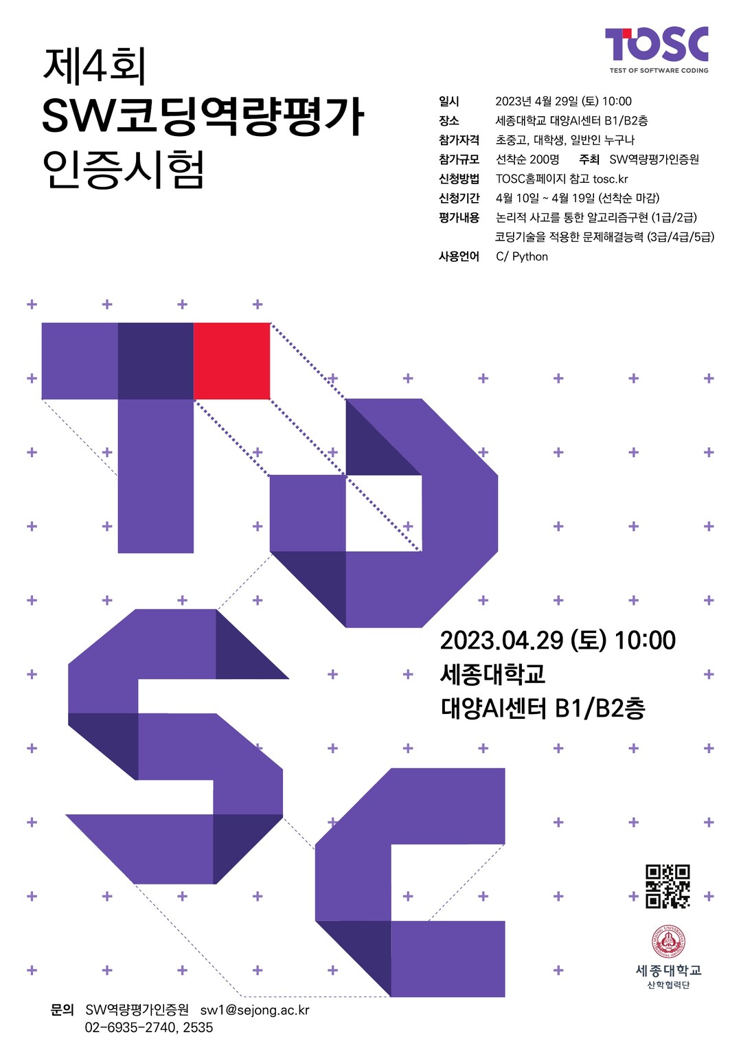 자세한 신청 방법과 샘플 문제는 토스크 홈페이지나 세종대 SW역량평가인증원으로 문의하면 된다.