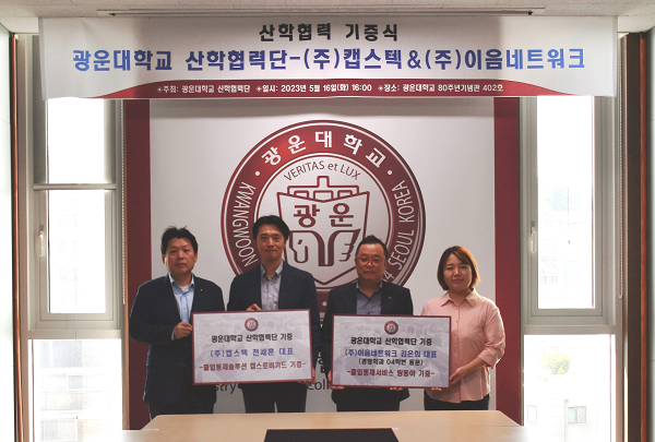 [대학저널 온종림 기자] 광운대학교 산학협력단이 지난 16일 ㈜캡스택, ㈜이음네트워크와 산학협력 기증식을 진행했다.